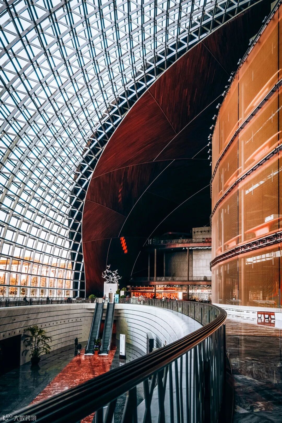 大剧院的外部为壳体钢结构的穹顶,壳体表面由18,398块钛金属板和1,226块白色玻璃巧妙拼接,中间为渐开式玻璃幕墙,营造出一种舞台帷幕徐徐拉开的视觉效果。使用尼康Z fc搭配尼克尔 Z DX 16-50mm f/3.5-6.3 VR拍摄,不但能够体现出相机良好的自动对焦、追焦性能,还可以让我抓拍人物运动中的精彩姿态。同时超大的室内空间,在尼克尔 Z DX 16-50mm f/3.5-6.3 VR广角镜头中体现出了宏伟的建筑结构,在画面中凸显了纵深感与立体感,提升了观看者的视觉冲击感。