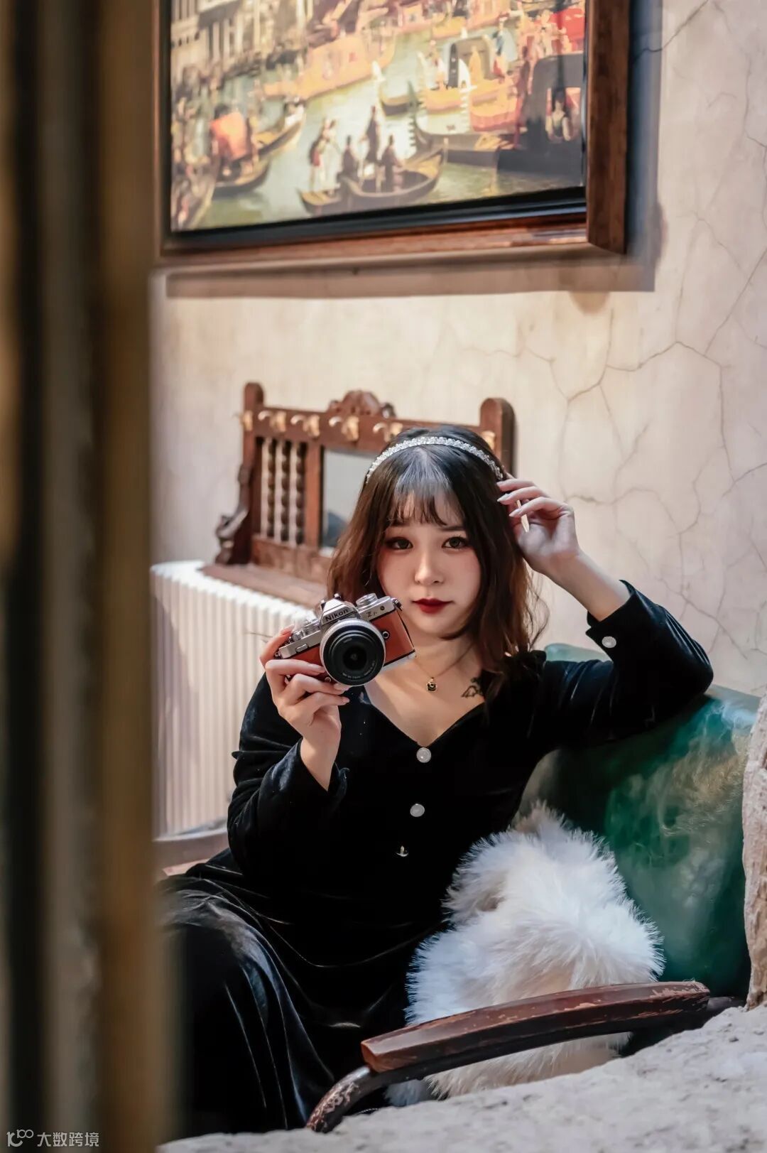 有画意感的照片更能够获得身临其境的感受,从大剧院里白色的钢架长廊望过去,竟有不一样的视角,而这时尼康Z fc如果作为出镜道具,其时尚复古的外观也为画面增添了几分趣味性。上图在拍摄时,对比白色的钢架结构,黑色西装的模特摆出随性的动作,和呈现序列状的背景产生冲突,形成了有趣的画面。