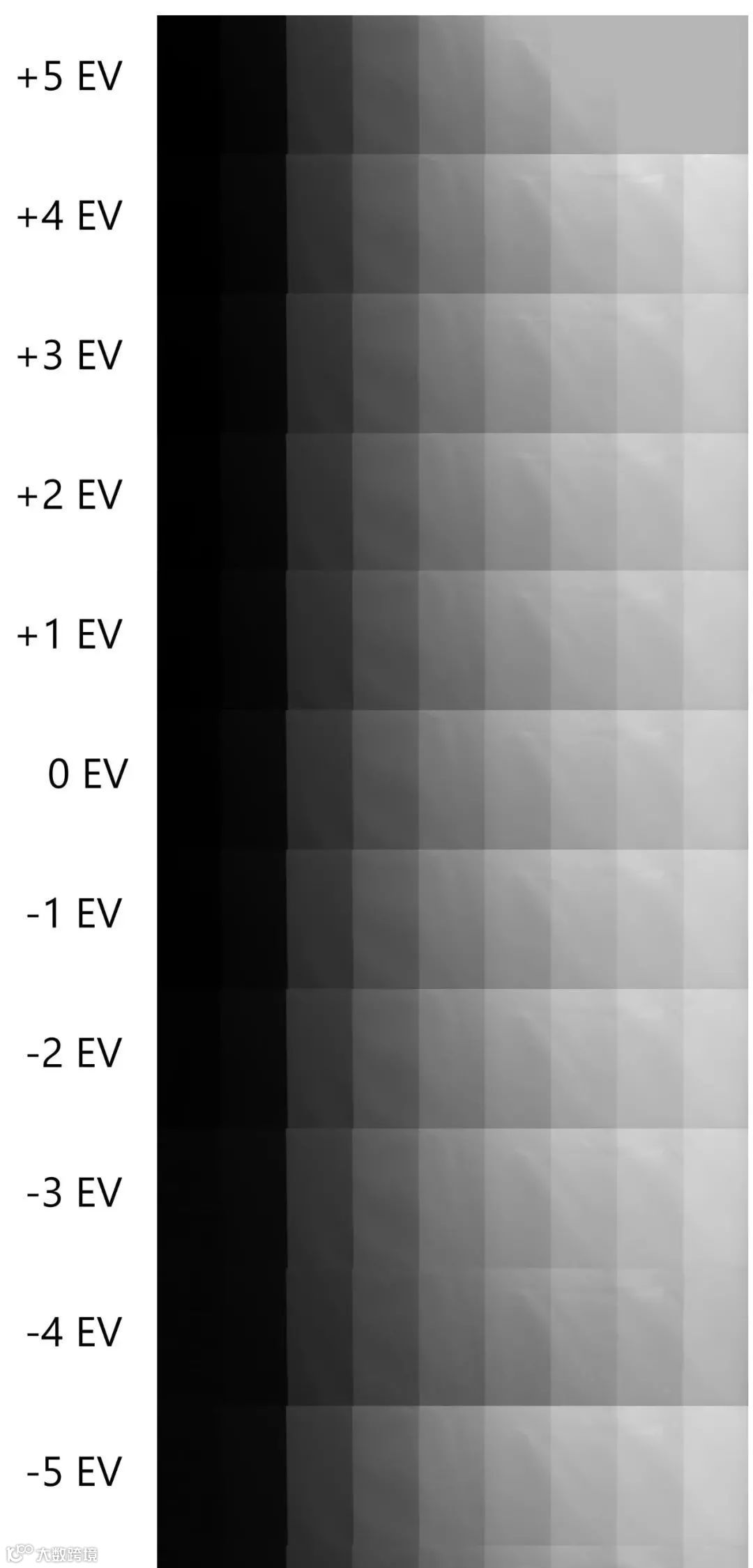 在宽容度测试中,我们通过拍摄一组RAW格式的灰度卡,并使用Photoshop拉回正常曝光,输出JPEG,从而对GFX100S的宽容度进行测试。