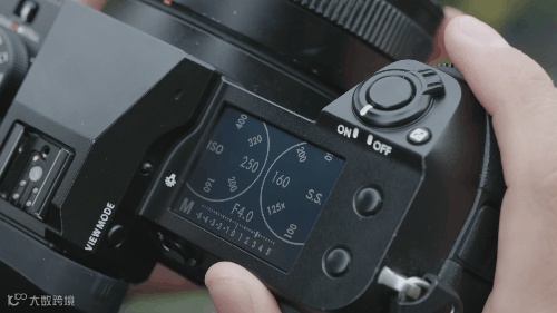 顶部是一块1.8寸的背光大肩屏,用户可以根据需要选择黑底白字与白底黑字两种显示方式。在参数上可以设置为显示光圈、ISO、白平衡、胶片模拟、电量等信息的全信息显示模式,也可以设置成只显示光圈、快门速度、曝光补偿和档位的拨盘模式,科技感十足。