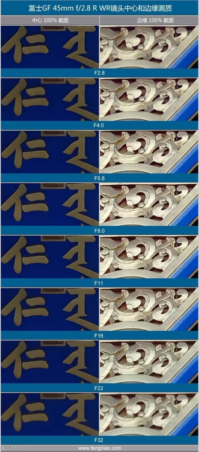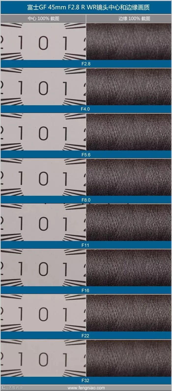富士龙GF45mmF2.8 R WR分辨率测试对比表