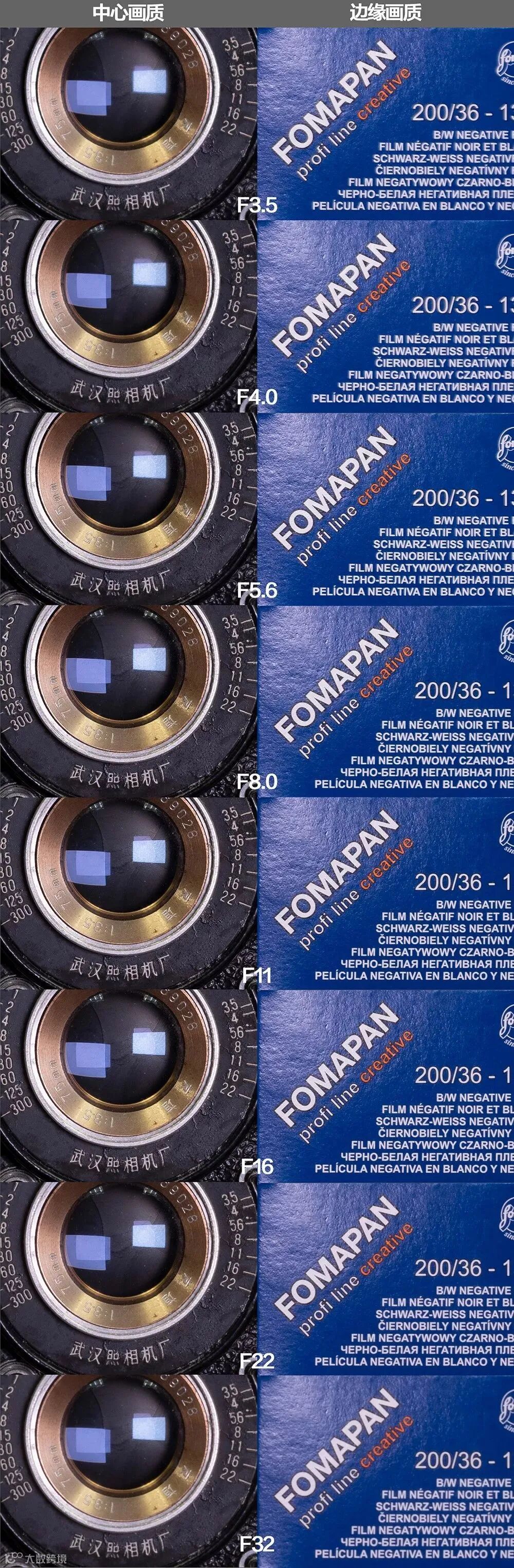 通过对比我们可以看到,这支镜头的中心的各档光圈表现非常平均,收到F5.6时画质表现最佳。而边缘的分辨率相对于中心就有所下降,但是总体来说都非常让人满意,最佳光圈同样在F5.6。而在光圈全开的情况下,画面锐度表现出色。