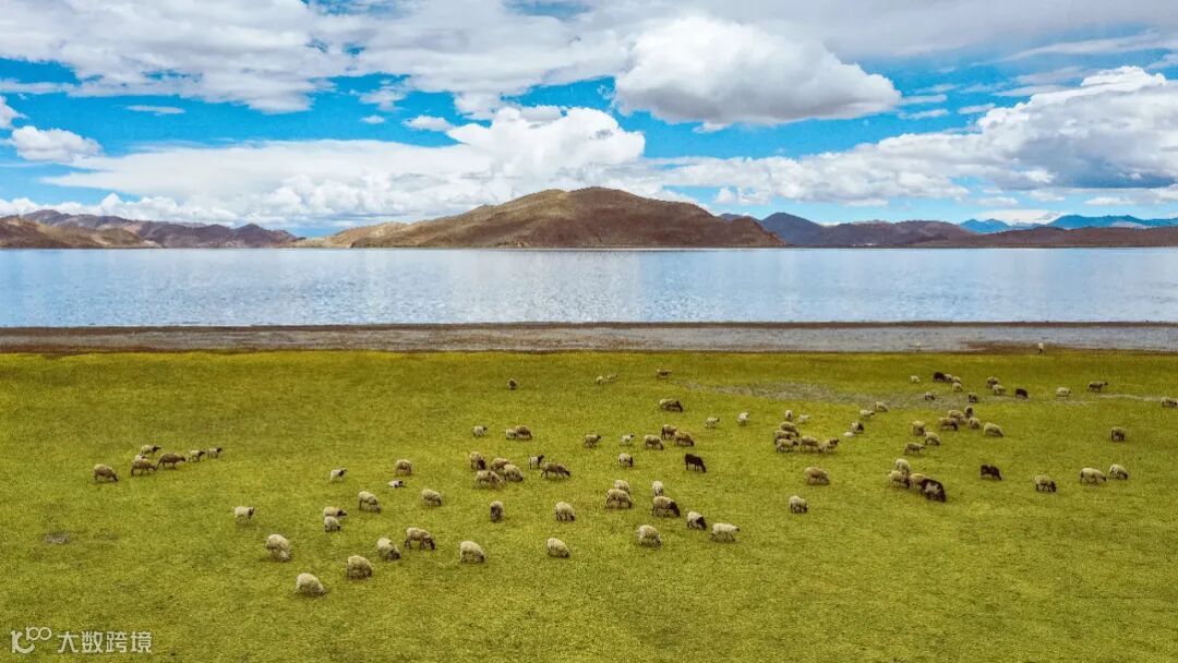 西羌塘属于半无人区,沿途多是一望无际的荒漠,没有路,没有人烟。而每遇湖区就立刻变换成了壮美的景象,仿佛人间穿越。蓝天、白云、高山、草甸、湖泊,此时我会选择长焦镜头压缩画面,待羊群、牦牛悠然走入镜头,进入C位,才按下快门定格画面。