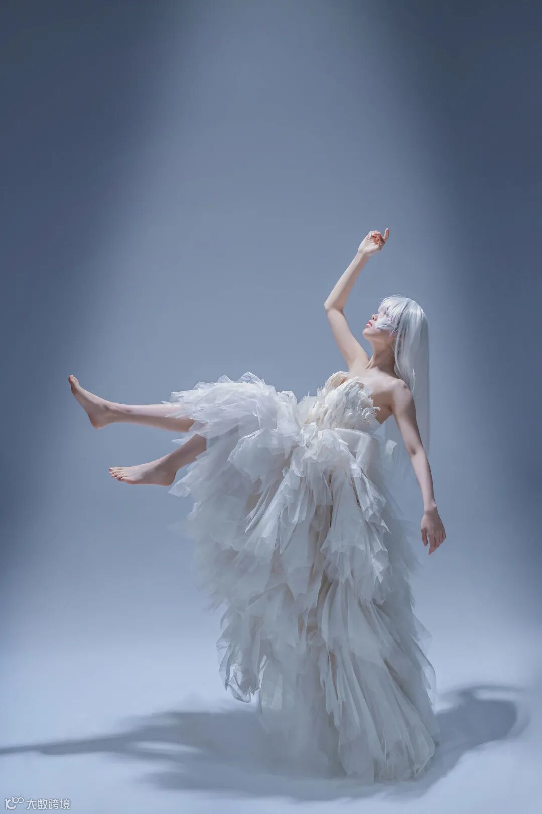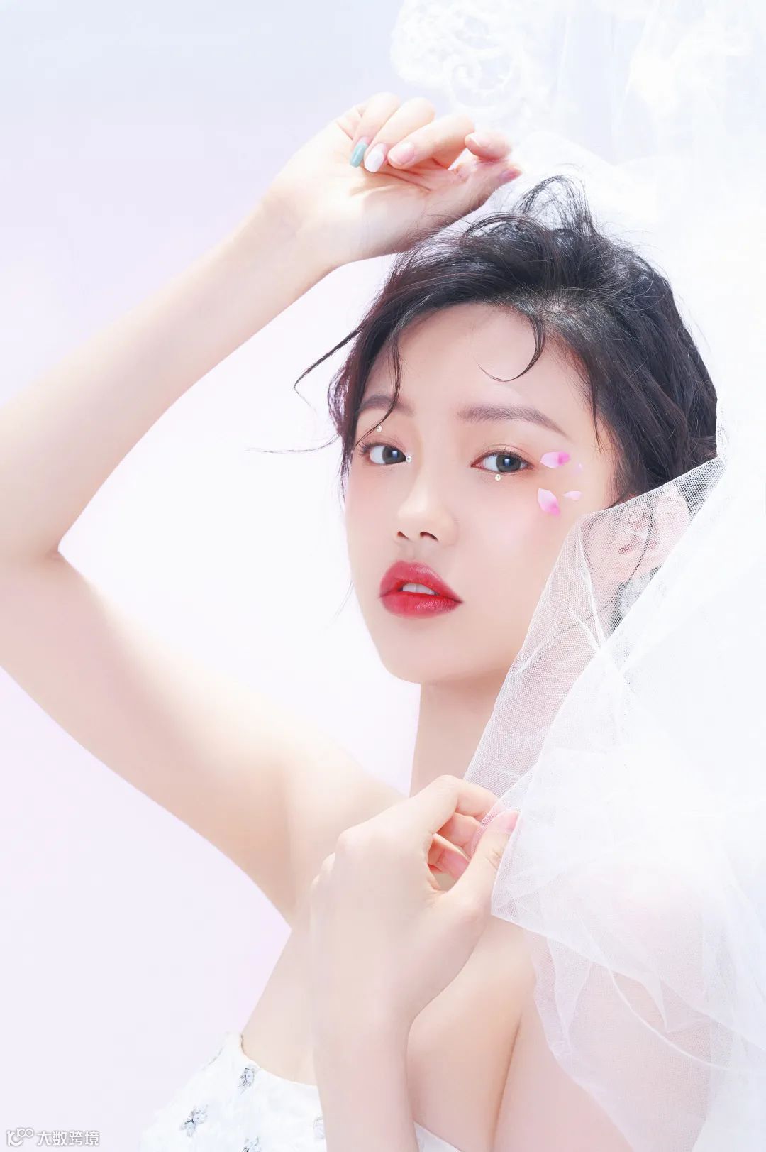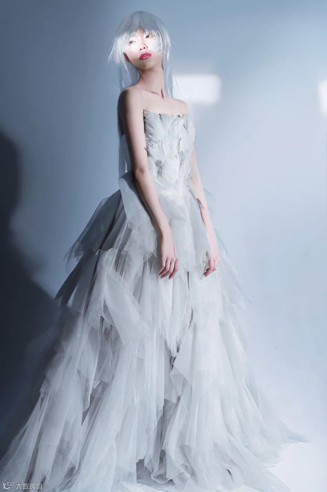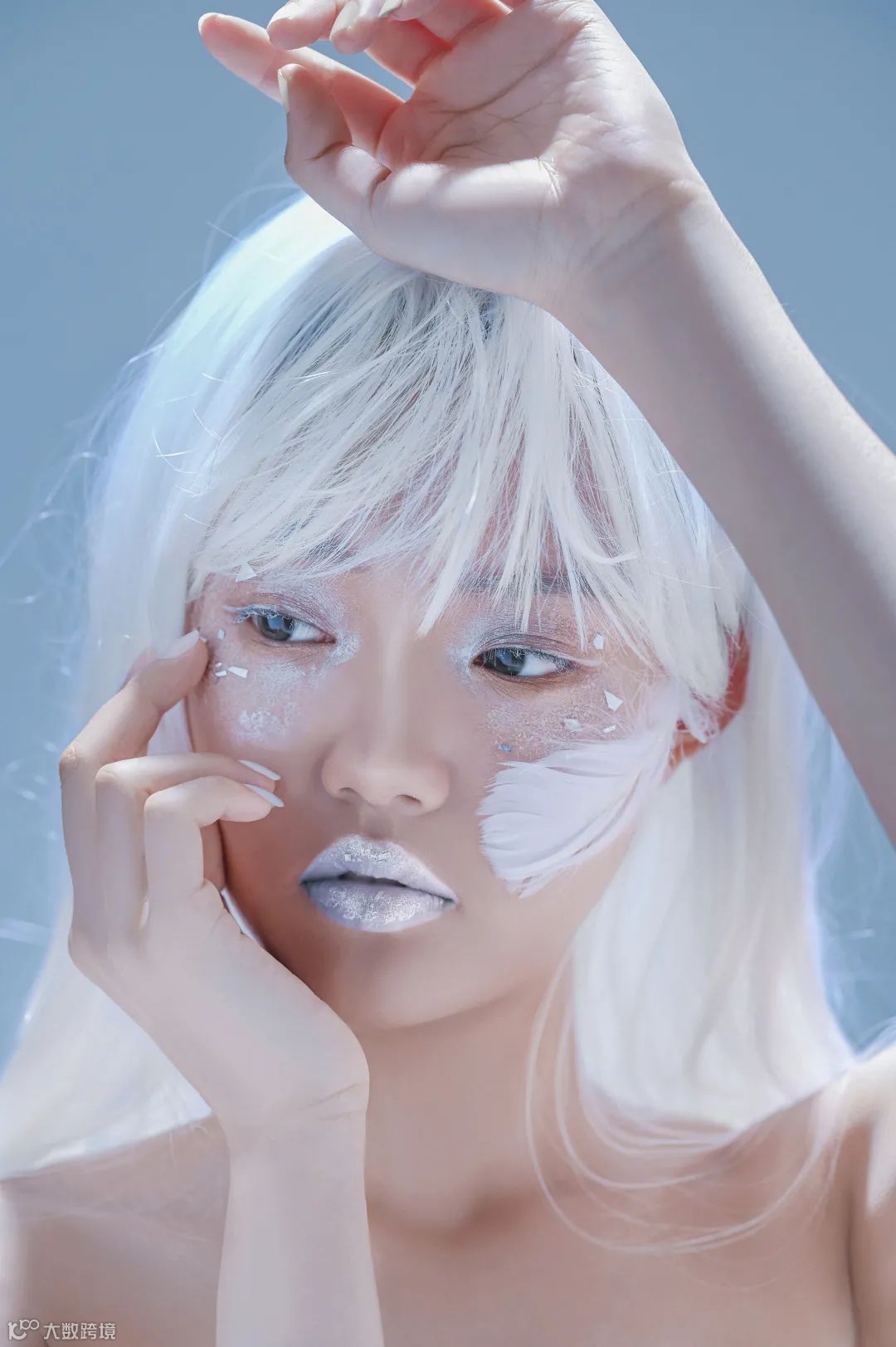 局部光线是时下很多摄影师喜欢的布光拍摄方式,在人物眼部通过束光筒设置高光区域,这样在同一场景同一造型中可以拍摄出不同的视觉效果。配合清淡的色调,可以让观众感受到更加空灵的人物状态。