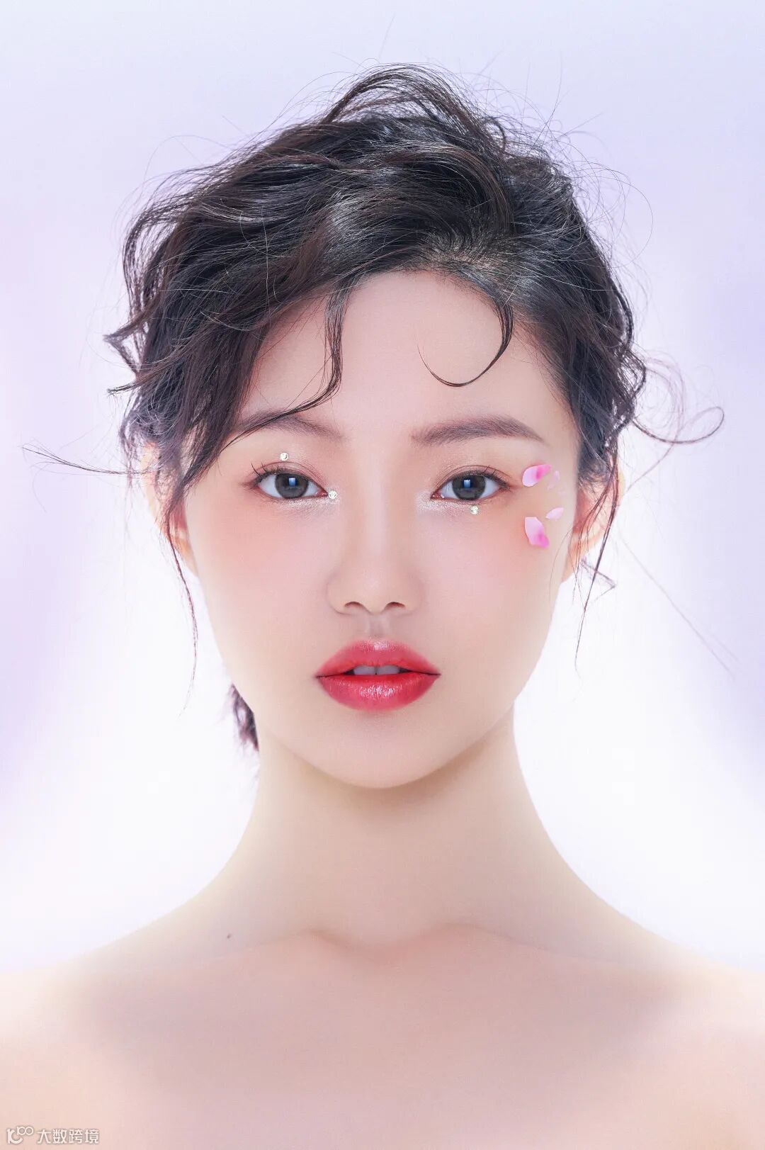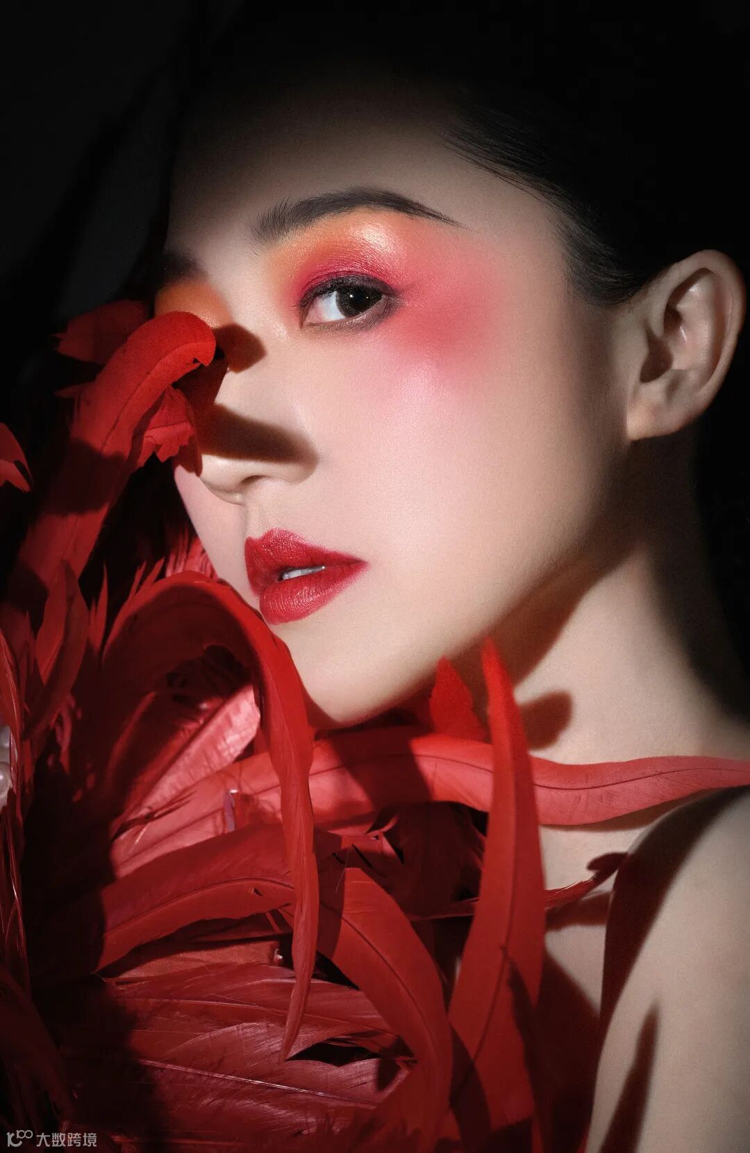 彩妆人像的拍摄,通过合理的光线搭配可以营造出不同的风格。运用顶光,增加光比,可以让画面的空间感更为突出。在影室拍摄时,暗部区域的布光可以略显不足,以避免高光区域的曝光问题,这样也更符合空间关系和视觉感受。