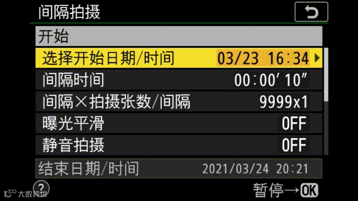 开启曝光平滑功能,可以防止延时拍摄中出现闪烁现象;同时在拍摄中,开启静音拍摄功能,不但可以减少相机震动,还可以减少相机的损耗。
