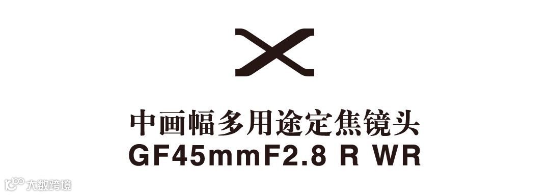 一支 GF45mmF2.8 R WR,带你领略万能视角的优势。相当于35mm格式下的36mm焦段,重量为490g,常用标准镜头的摄影爱好者体会从中体会到小巧玲珑的外观带来的拍摄乐趣。