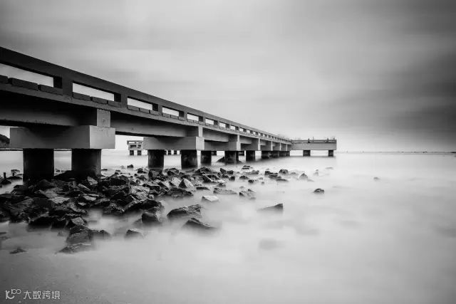 长曝光后的水面给人一种祥和宁静的氛围,但同时就会产生一些画面的略显单调的缺陷。所以,在我们拍摄的时候,尽量找到一种静物与水景搭配,一块礁石,一只飞鸟,一片落叶都可以,只要是不动的,能够在长时间的曝光过程中保持静止,就可以搭配到画面中来。