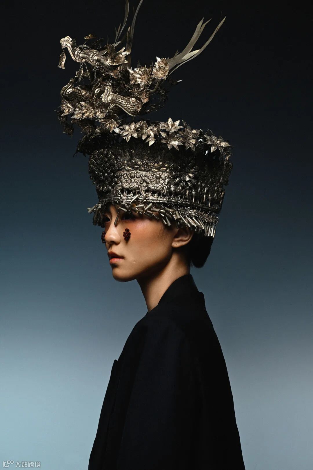 这次拍摄前期我确定了三个主要的表现方向,分别是:复古的色彩与浓重的影调氛围;具有民族特点的服、道、化搭配并结合时尚风格元素;动静结合的夸张造型。我选择这样的表现方式在强调人像作品视觉冲击力的同时,也体现了尼康Z 9这台旗舰机型在商业摄影领域的优势。