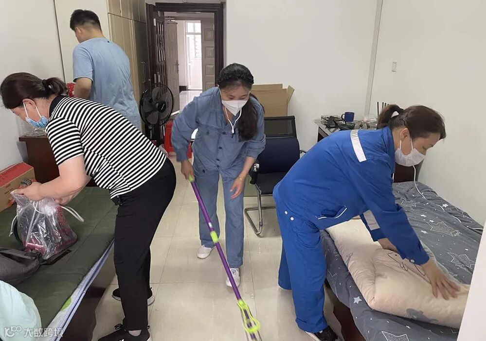 从5月中旬开始,公寓服务部管理人员一边做好日常工作,一边克服没有劳务人员的实际困难,全员参与全面彻底对A\B两栋楼开展环境消毒、回收房间内原有隔离期配置的物品、家俱,配齐所有房门钥匙。并发扬连续奋战精神,对A\B两栋大楼462个房间各角落、浴池、会议室、娱乐室、庭院等进行卫生清扫,检查所有房间水、电设施完好情况。由于部分房间地面开裂、暖气泄漏,迅速组织人员进行维修,在最短时间达到入住条件。