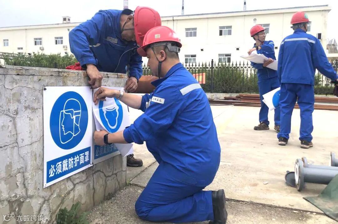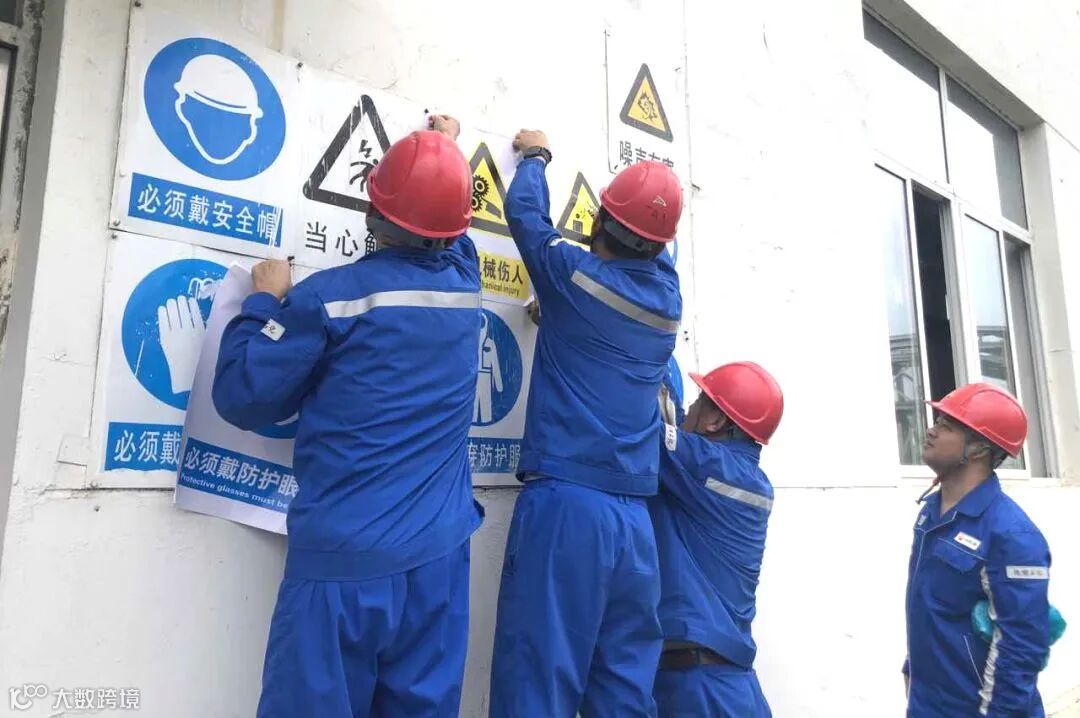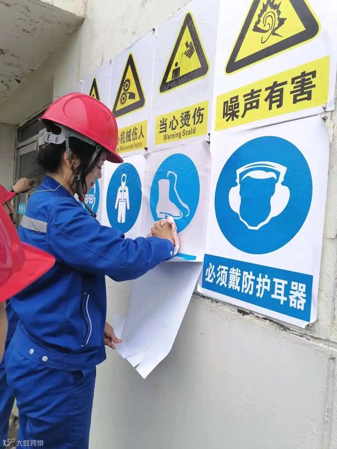 针对此问题,该车间按照原警示内容定制了警示标志贴纸进行修缮,但所有的警示标志都在室外,炎热、暴晒的天气为户外修缮工作的顺利开展带来困难。