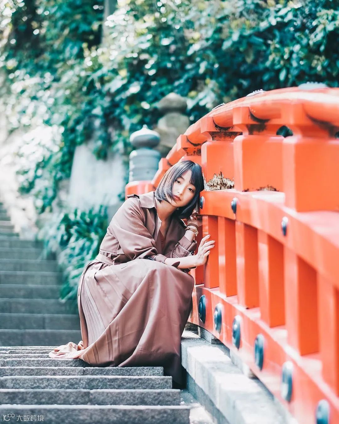 引导式前景与引导线构图有一定的相似之处。在我们拍摄的时候,注意一下画面中有没有引导性或延伸性的物体(如道路、栏杆、扶梯、墙面等等),可以尝试将被摄人物安排在这种类型前景物的延伸处。
