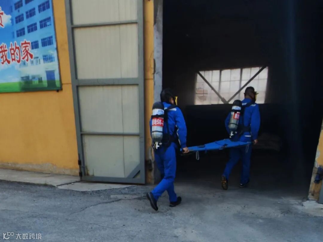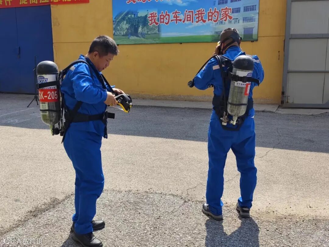 在扑救火灾过程中,由于火势较大、无法控制,现场发现一人被烟气熏倒,计划部部长通知腈纶调运车间主任,立即让救火人员撤离现场,组织两人佩戴空气呼吸器进入现场,实施救人。同时通知班长立即拨打急救站电话,拨打腈纶消防大队电话请求救援。在腈纶消防大队人员的扑救下,火情得到控制,确认险情消除后,演练终止。