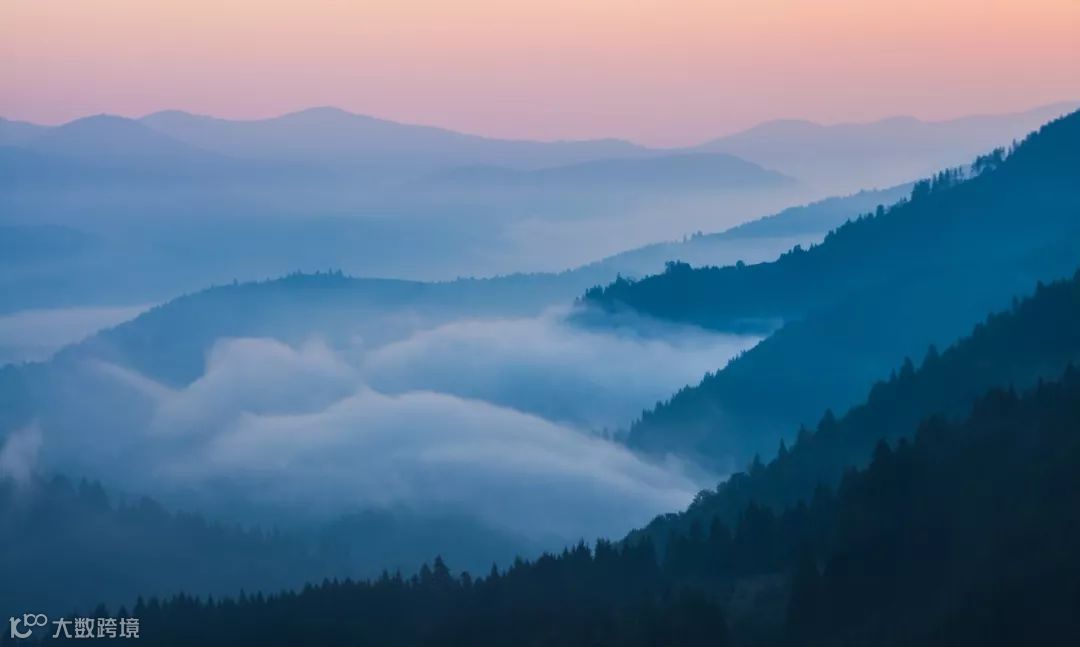 山峦中呈现柔和偏蓝的冷色调。此时非常适合拍摄层峦的山影。