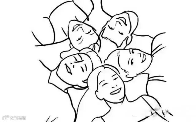 8、围圈躺下,头贴头拍照,在户外草地拍比较合适。