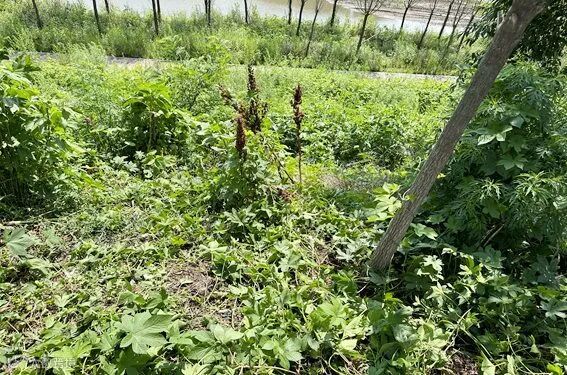 古城河畔风景如画,几百米的景观独有新生桥下杂草丛生,由于长时间缺少维护,致使河畔两边坡道垃圾遍处,破窗效应导致越积越多。