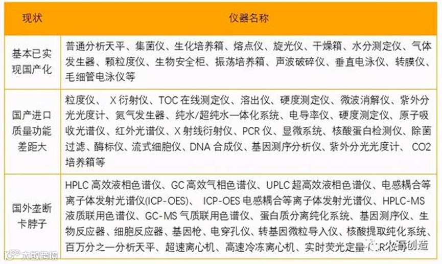、检验仪器:差距大,距离全面国产化,尚有很长的路要走,与高质量的化学材料、元器件、传感技术、自控系统等国产产业链或流型研究技术等基础学科发展息息相关。