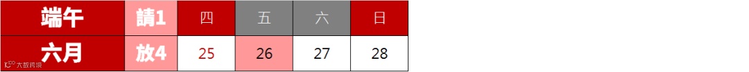 2020年端午節在6月25日星期四,所以只要請26日(星期五)一天假,就能有4天假期,可以計劃一個短期旅行!