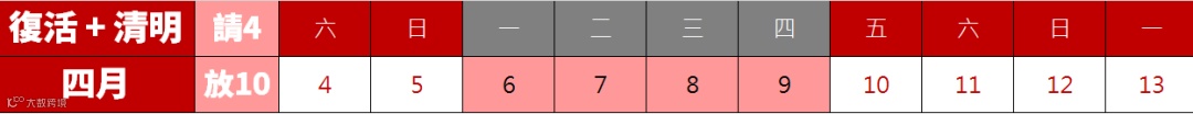 2020年的受難日為4月10日(星期五),而復活節紅日是星期一。大家4月6日至9日連請4天假,就可以自製10日長假。