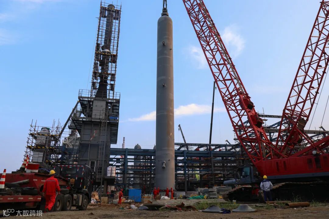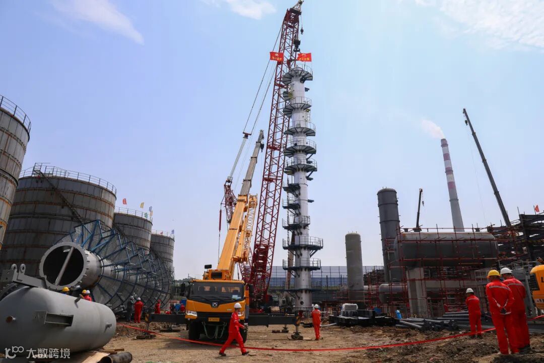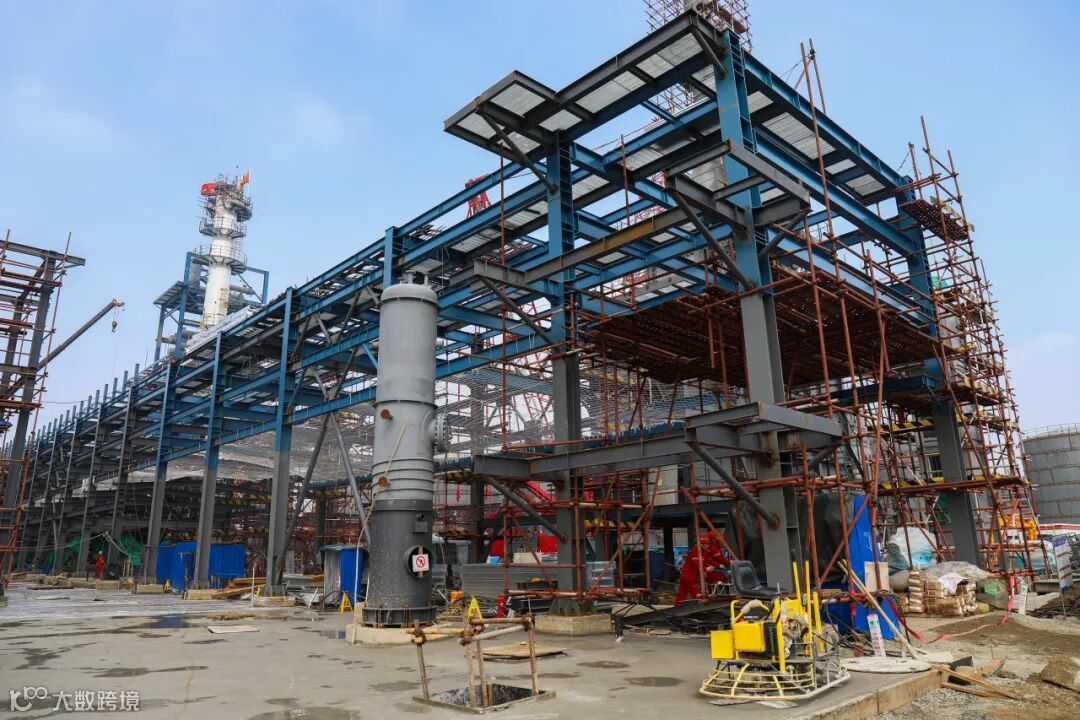8月7日,烈日当空,酷热难耐。在石油一厂油蜡联产改造工程建设现场彩旗招展,机器轰鸣,焊花飞溅,车来人往;80万吨/年溶剂脱沥青装置C-105沥青汽提塔、C102沉降萃取塔巍然屹立,设备安装已过半;50万吨/年石蜡加氢装置土建工程完成,开始设备安装;新建罐区罐群耸立,近百名建设者正在这里紧张施工。