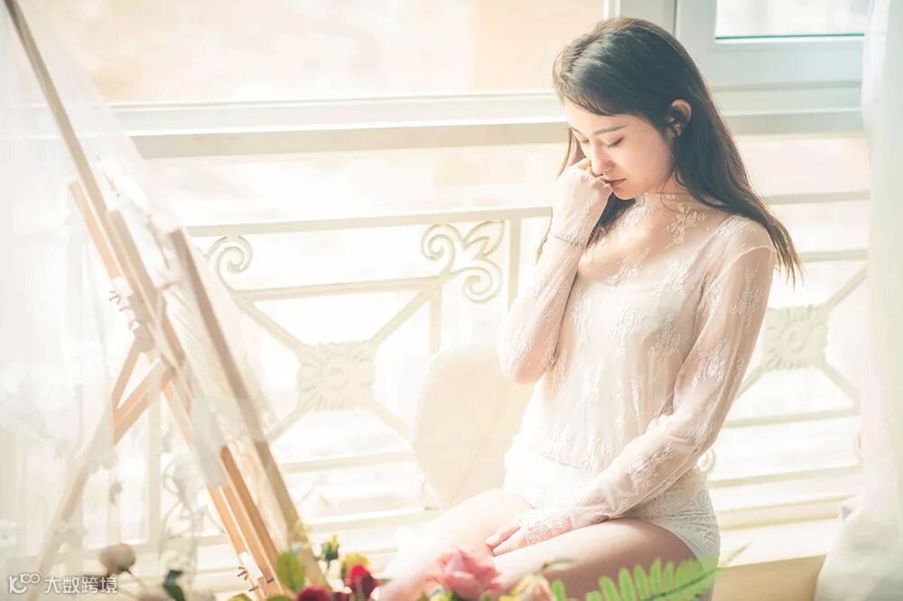 50mm的镜头是很适合拍人像的镜头,接近人眼视角的感受,很大程度上不会产生畸变,可以展现人物真实、美丽的一面。这张照片使用了AF-S尼克尔50mmf/1.8G镜头拍摄,同样由于室内光线较暗,把模特置于窗边,得到了很好的光线补充,这时利用f/1.8的大光圈不但可以虚化背景,还可以在速度及曝光上得到很好的控制。