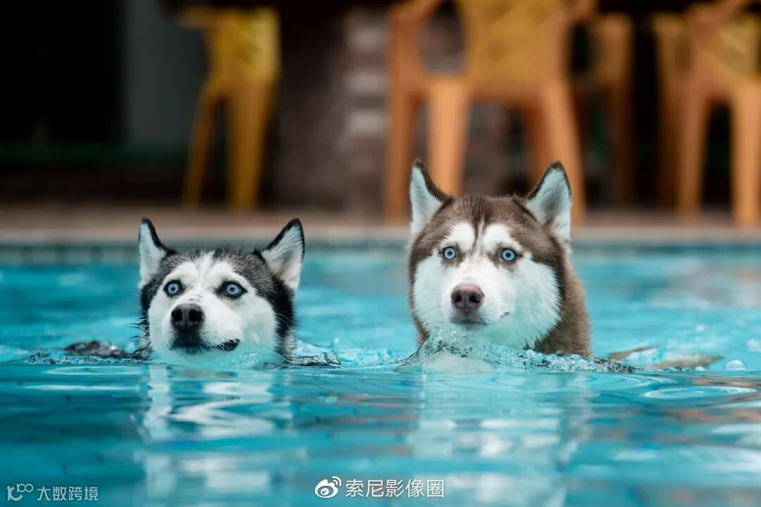 《游泳的哈士奇母女》,作者:林颖轩,Alpha 7R II