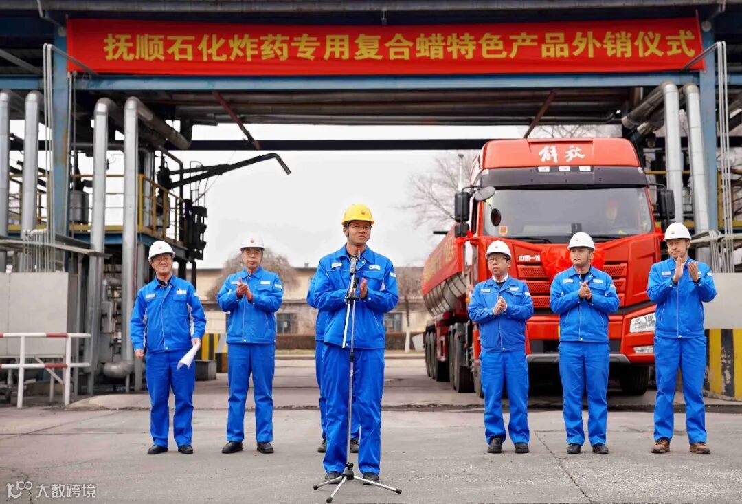 图为抚顺石化炸药专用复合蜡特色产品外销仪式现场。