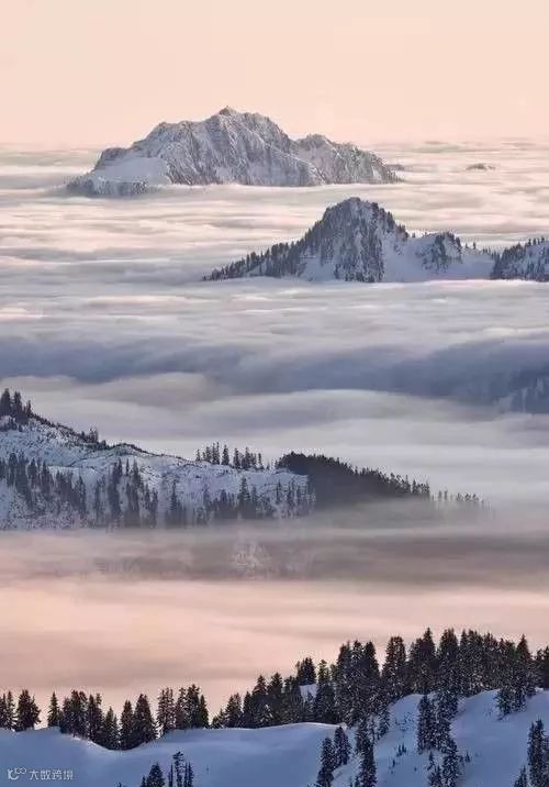 比如下面这张照片,在画面中,我们会觉得近景的松树以及山体与背景的山体相距不远。而正是因为这种透视关系,才会表达出画面中的高低对比以及云雾产生的层次感。