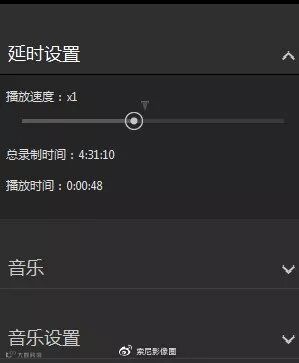 1、视频速度和音乐设置面板:我们可以控制播放速度加快或则减慢达到我们想要的视频速度;