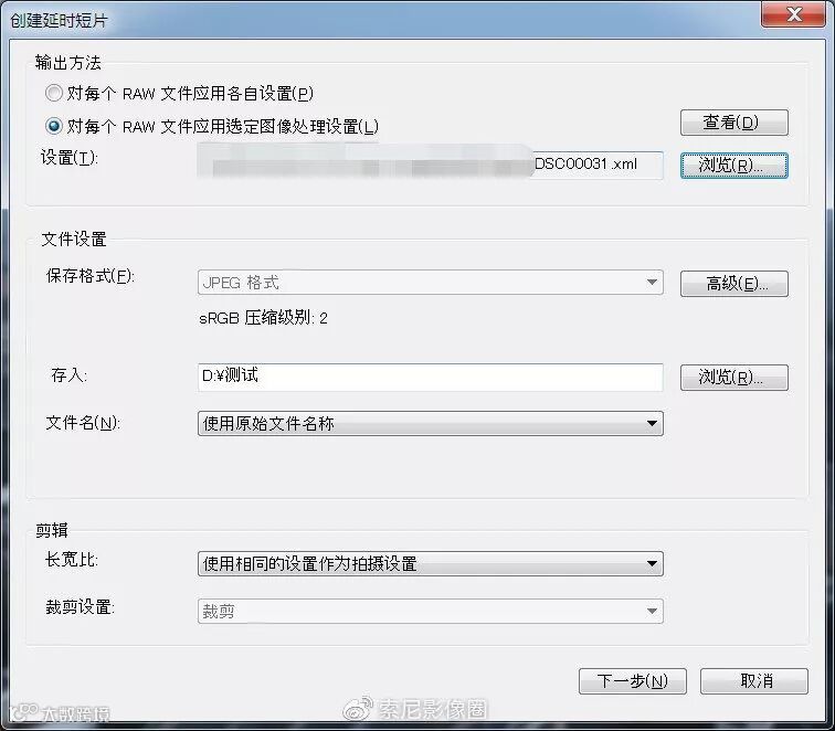 6、在输出方法选择点选-对每个RAW文件应用选定图像处理设置后点击浏览选择刚才所保存的xml调色预设文件DSC00031.XML,并设置好输出的文件夹,其他不需要改变;
