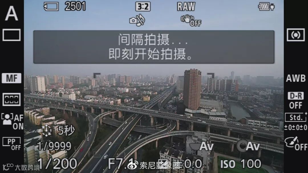 开启间隔拍摄功能后,半按快门回到实时取景界面,会发现屏幕多了红框处的数字,5秒代表每张照片间隔5秒,0/9999代表当前拍摄数量/总共拍摄数量(我喜欢拍到自己按快门停止故设置最大值)