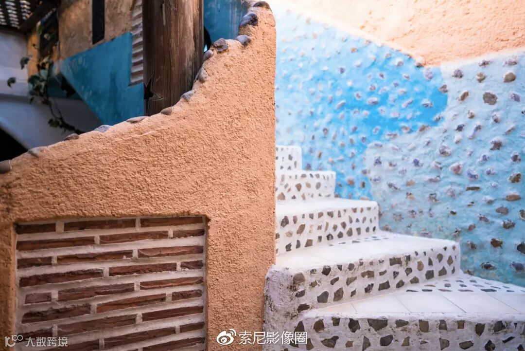 仔细看蓝城的建筑,无论室内外用的蓝色各不相同,感觉随机性很大,也许正是这种随机的蓝色呈现让人又不觉得无聊和呆板,而是觉得蓝色的丰富多彩。