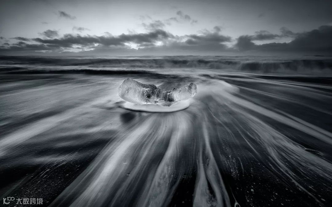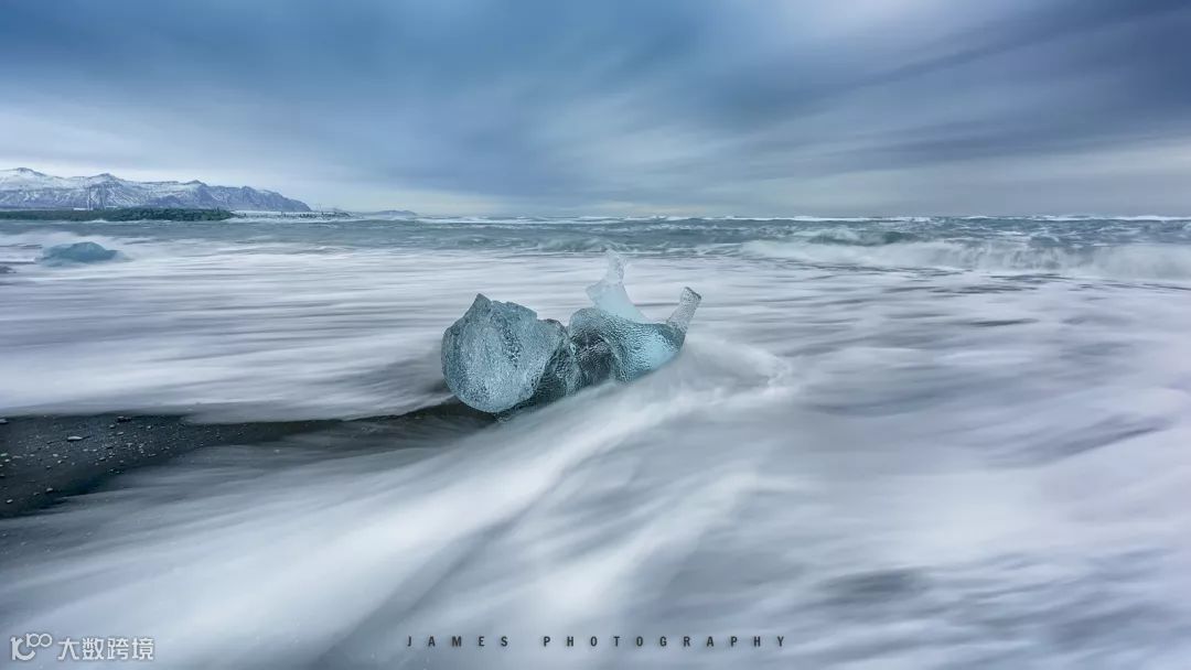 冰岛钻石冰沙滩是等待海浪上冲的时候按下快门,用0.5秒曝光时间捕捉瞬间。