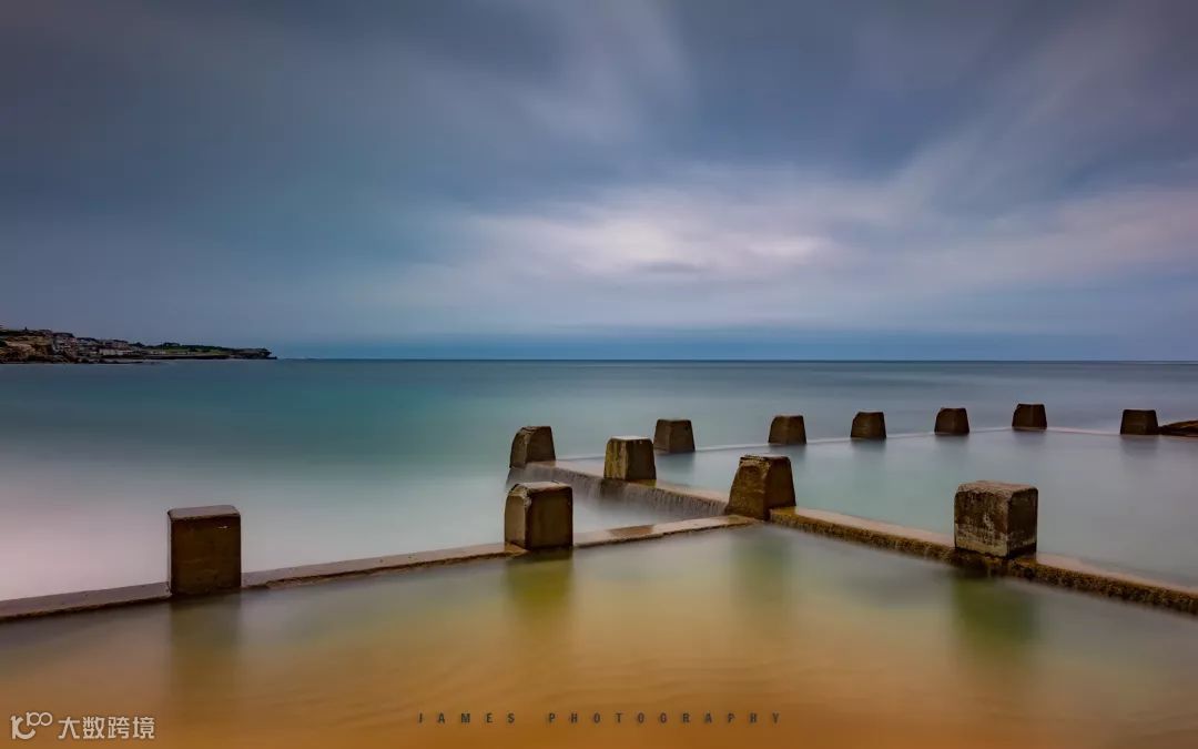 当我们使用十档ND灰镜将曝光时间延长到极致后,整个海边岩石泳池平静得不像在海边,更不要说另外几个游泳的人影,也消失的无影无踪。