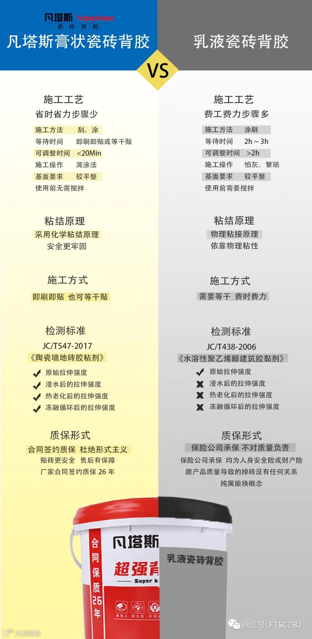 热膨胀系数与砼接近。背胶干固前通过布朗运动向水泥砂浆渗透,产生强大的吸附力,凡塔斯超强背胶粘结强度2.37Mpa,高于执行标准指标要求的4.7倍,有效防止瓷砖空鼓、脱落等情况。