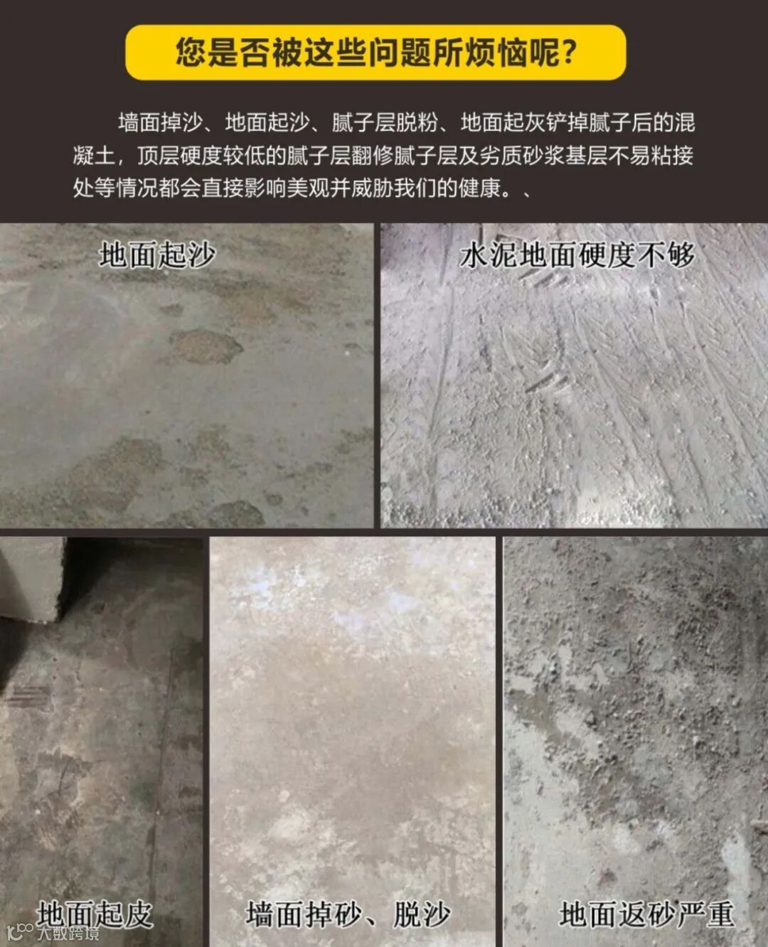 工业与民用建筑中,混凝土和水泥砂浆地面最容易起砂的原因是没有做好基层的固化;有些已经装修好的房子瓷砖出现空鼓严重甚至掉砖的原因是没有处理好基面导致返砂,起灰最后瓷砖脱落。手摸基层脱粉以及铲去腻子层墙面想贴砖又怕砂浆与墙面不粘,涂料涂刷出现不易粘接等问题时要怎么解决?