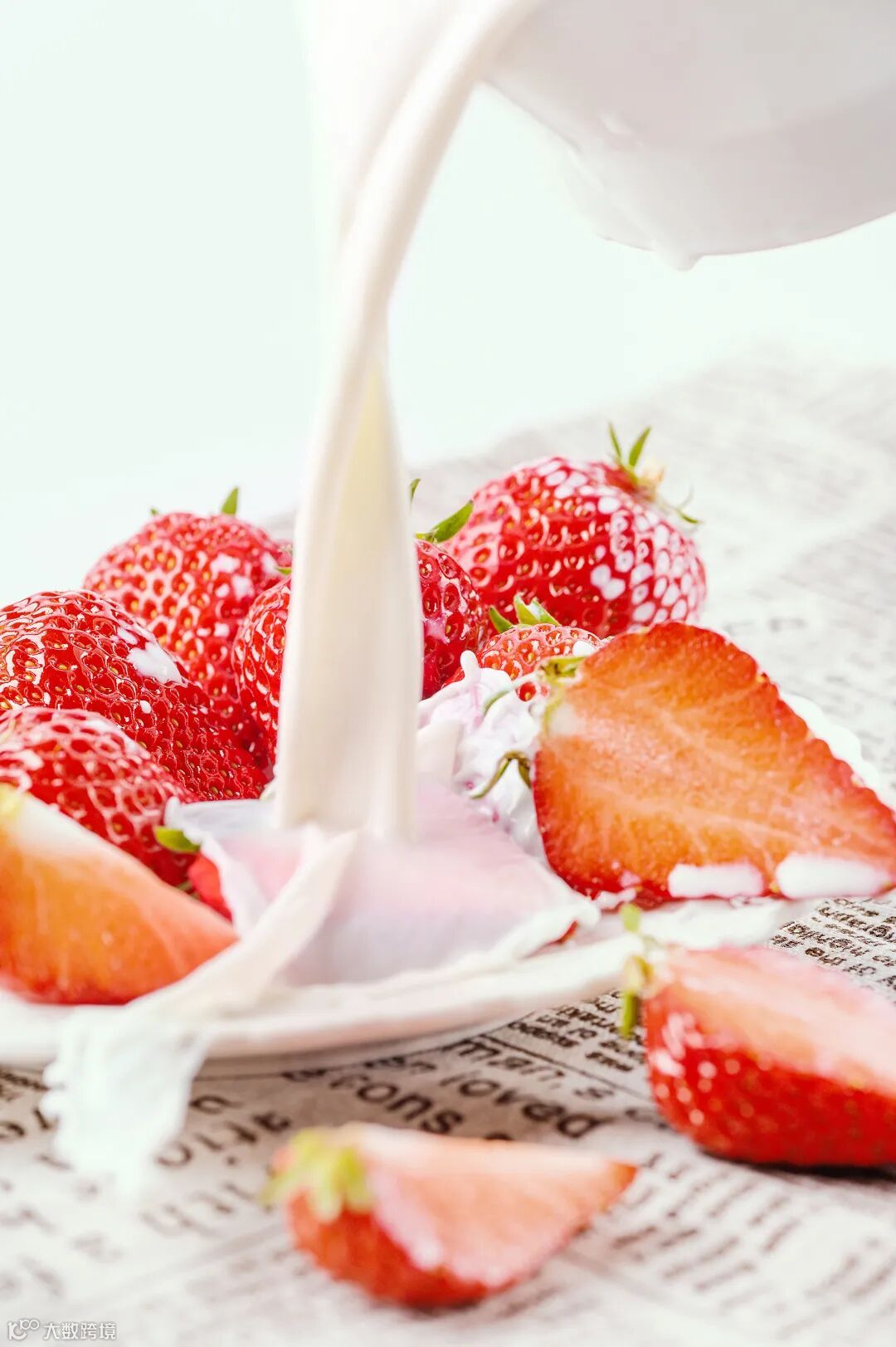 将水换成牛奶,“奶”花四溅的形态会截然不同,搭配色彩鲜艳的草莓,在进入杯中的一瞬间,形成更加夸张的形态。这时尼康Z 6Ⅱ以约14幅/秒速度进行高速连拍的特点就充分发挥出来,再结合高速闪光灯的配合,可以捕捉到每一个不容错过的瞬间。