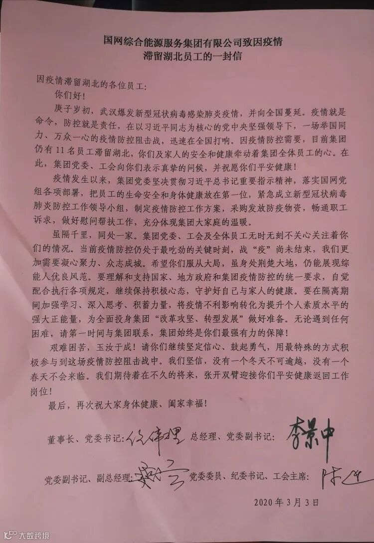 正如信里所说“要在隔离期间加强学习、深入思考、积蓄力量,将疫情不利影响转化为提升个人素质水平的强大正能量,为全面复工复产、投身集团‘改革攻坚、转型发展’做好准备。”如果说听到的感动已经泛滥,亲身感受到的感动则会换来无数个身体力行。