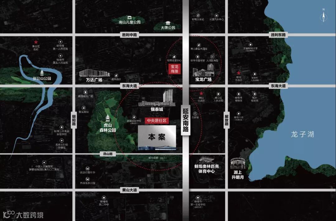 蚌埠融创虎山项目择址城心虎山板块,路网发达、商圈为邻、 学校(规划新城实验学校虎山校区)在侧、公园相伴。