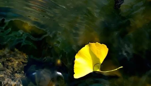 一片在水中的树叶,配合光影、水波的透明质感,画面更有意境