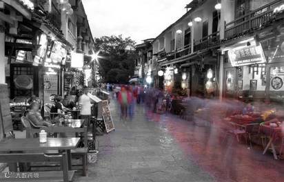 在人行道(不要太多人的),架上三脚架,对着夜景测光,让人从镜头四周走过,最后形成的效果就是“人流”(不是堕胎啊同学)与夜景的相得益彰。不过这个有一点儿难度,特别是脸皮要厚一点儿。