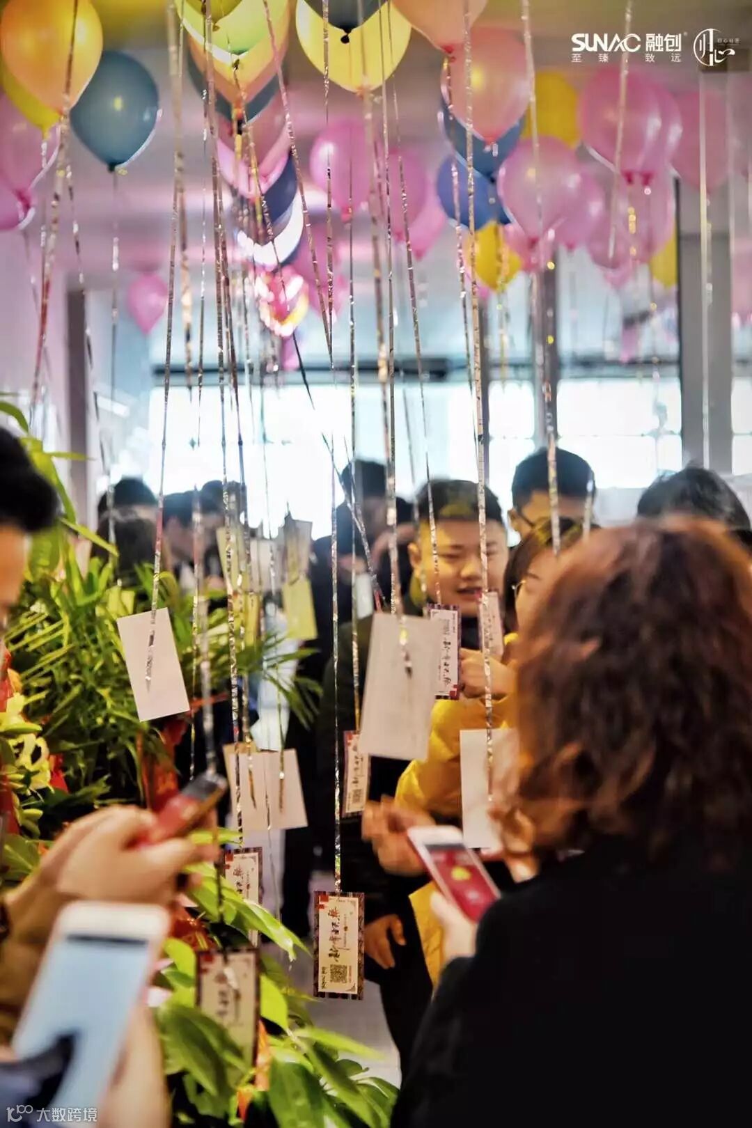 冷餐、蛋糕……活动区域,大家享受着美味的同时,还纷纷拿起手机扫挂在气球上的纸片赢红包,收获意外的小惊喜。