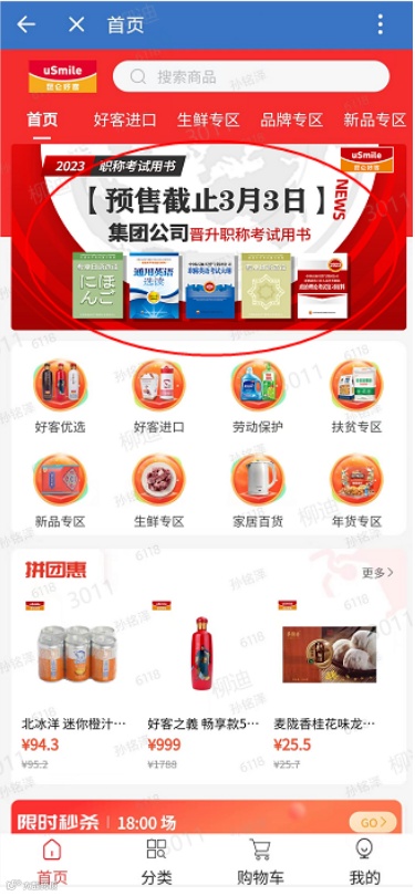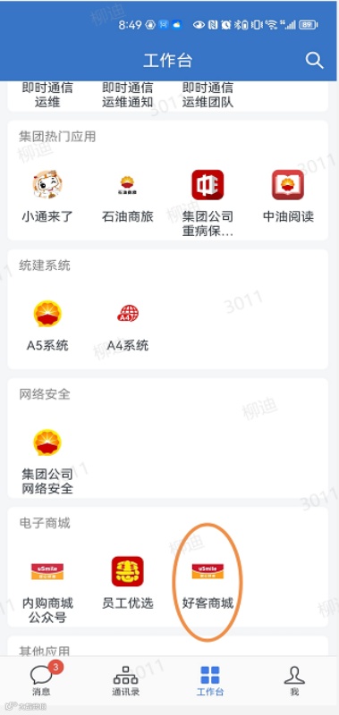 登录中油即时通信(中油政务微信)APP,点击“工作台”,访问“好客商城”。可在商城首页轮播图点击“职称考试用书”,也可在商城首页分类找到“考试用书”,进入“职称考试”专区,根据需要订购所需参考资料。