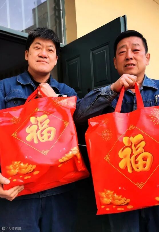 员工们喜气洋洋地把奖品大礼包领回家!