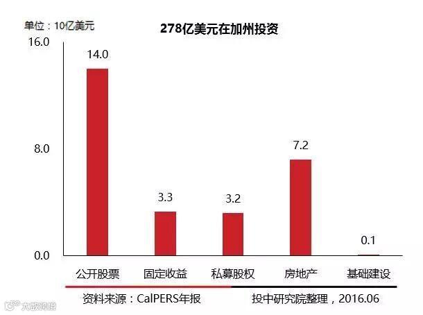 根据2015年财报,截至2015年6月30日,CalPERS资产规模已达3019亿美元,比上财年增长1%。在CalPERS的投资组合中的9.2%,共计278亿美元投资在加州。从2014年6月30日至2015年6月30日,CalPERS的加州投资项目组合的市值上涨了8.2%。