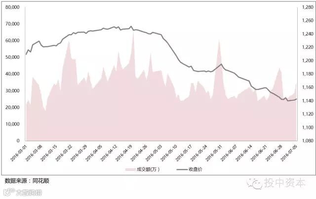 三板做市成交额和收盘价(2016.3 - 2016.6)