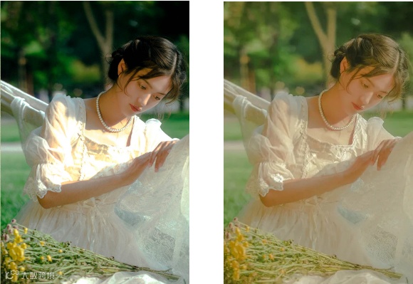 ②原片高光过曝了,背景过暗,皮肤受光不均,暗淡不通透 → 后期需要拉低高光,提亮暗部,统一色调。