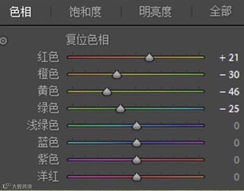 接下来我们要开始调整HSL,就是对各种颜色的色相、饱和度和明亮度进行细致地调整。