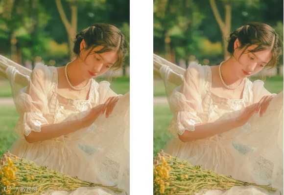 ①原图色调偏冷,颜色偏寡淡 → 我想要清晨的清凉又温柔的感觉,画面偏暖。
