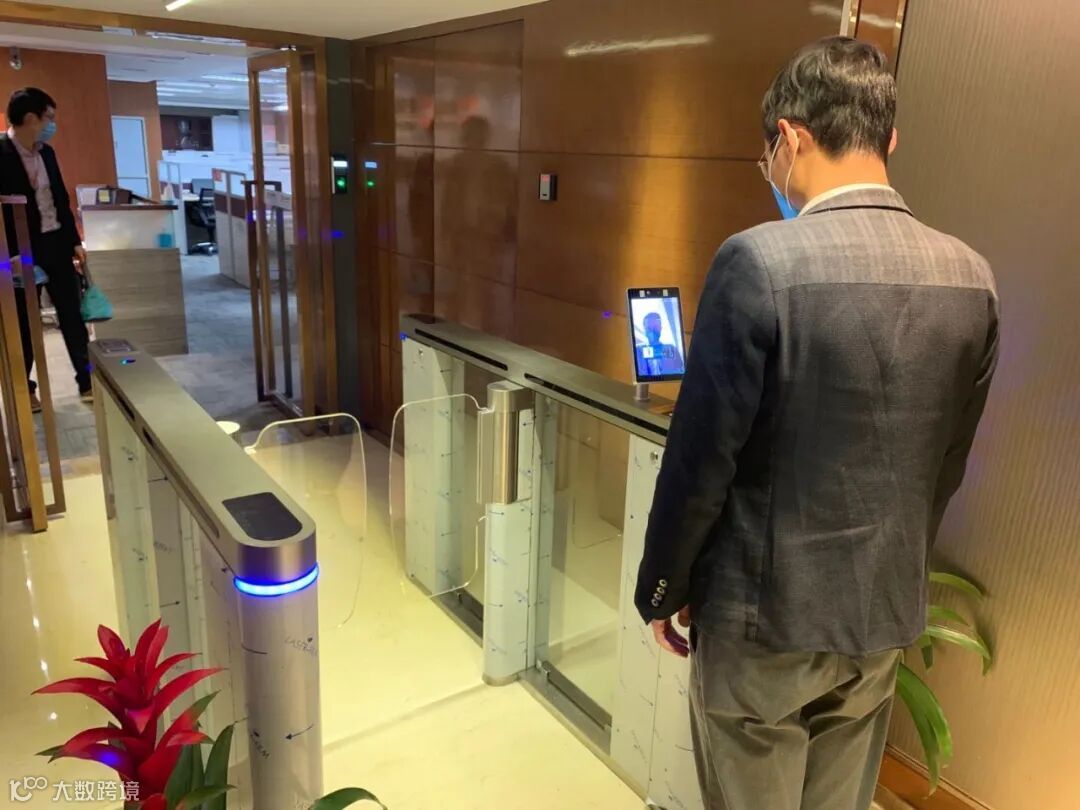 在广州中石化大厦入口处,这里没有以往用手持测温枪对进店人员进行体温测量的场景,取而代之的是一扇“测温安检门”,来往人员通过时接受“无接触式”温度监测,体温及累计测温人数会即刻显示在监测屏幕上。